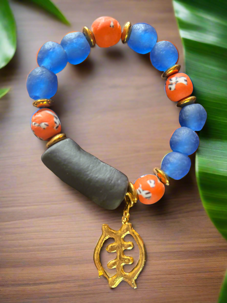 Add a personalized touch to your wardrobe with the Adorn You Charm Bracelet. Each custom-made, handmade bracelet features beautiful beads and a unique Gye Name Charm, adding meaning and style to your accessory collection. Express yourself and adorn your outfit with this charming bracelet!