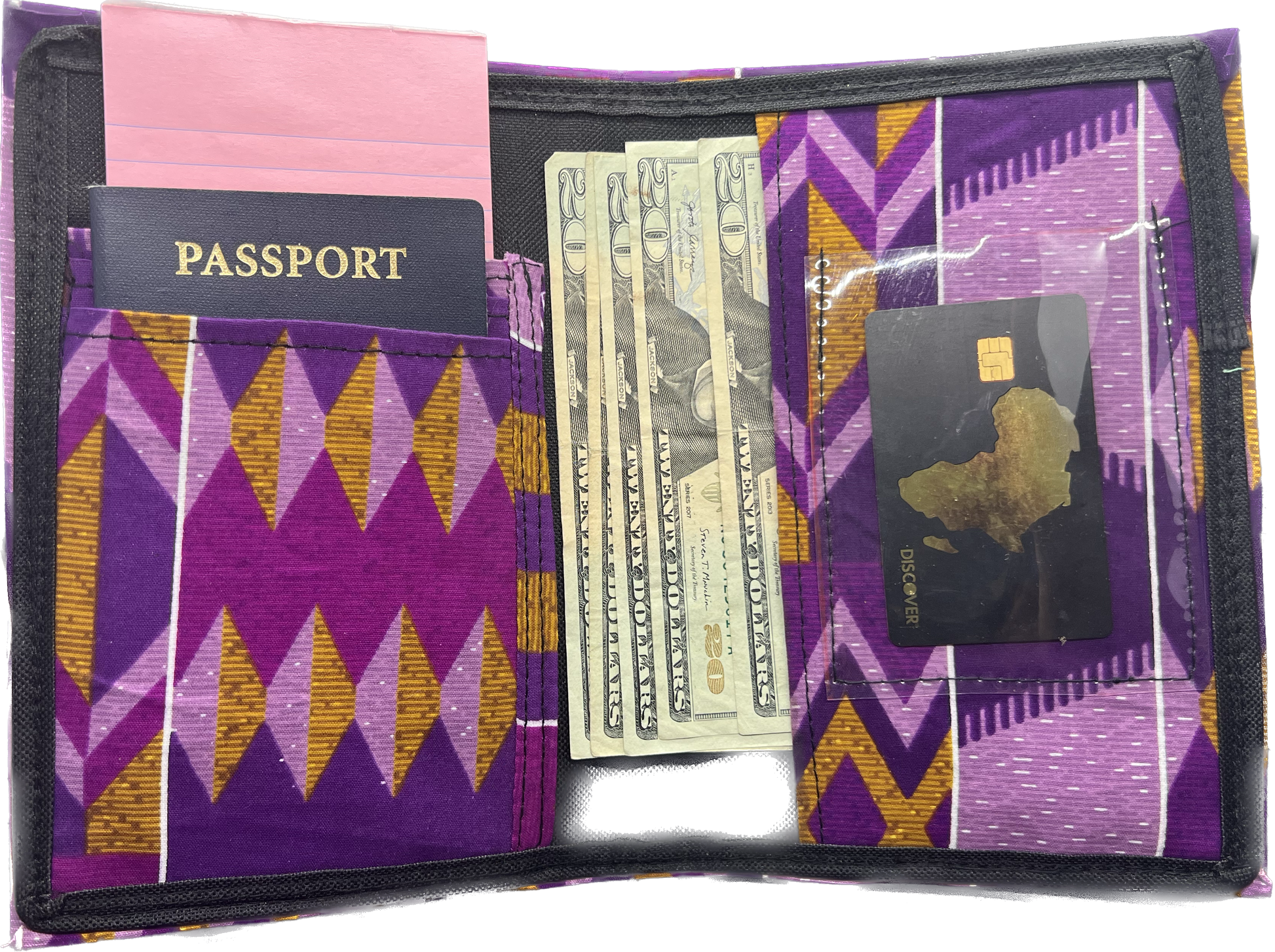 Organize your life with the beautiful Ankara Organizer. This stylized organizer has dedicated slots for passports, money, credit cards, and note pads, making it the perfect companion for travel, school, and daily life. It'll make a unique statement with its touch of African culture. Hold all of life’s essentials with Ankara Organizer.