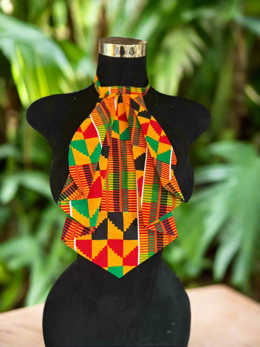 Transform your business attire with our Layered Jabot! Made with vibrant Ankara fabric, this jabot adds a pop of color to any outfit while showcasing your cultural heritage. Perfect for replacing a necklace, it's a stylish and unique way to elevate your look. Make a bold and proud statement with the Layered Jabot.
