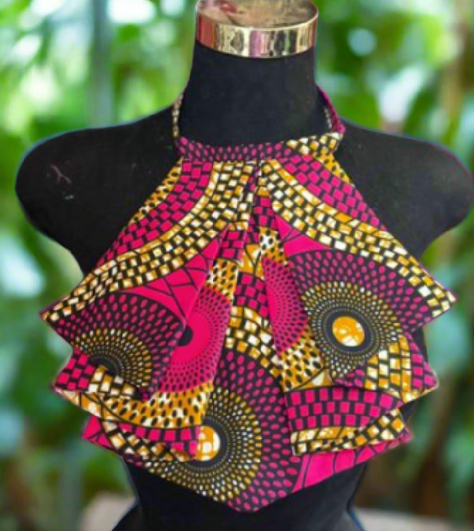 Transform your business attire with our Layered Jabot! Made with vibrant Ankara fabric, this jabot adds a pop of color to any outfit while showcasing your cultural heritage. Perfect for replacing a necklace, it's a stylish and unique way to elevate your look. Make a bold and proud statement with the Layered Jabot.